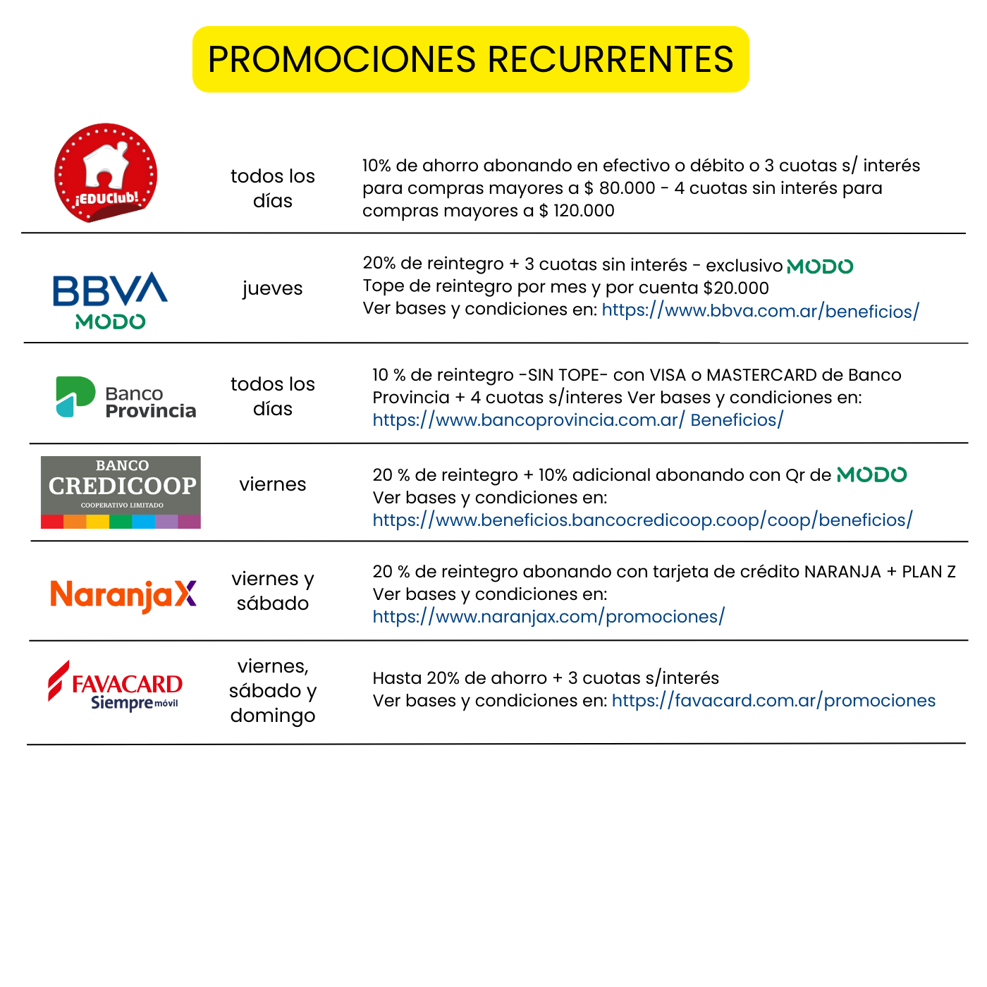 Promociones vigentes